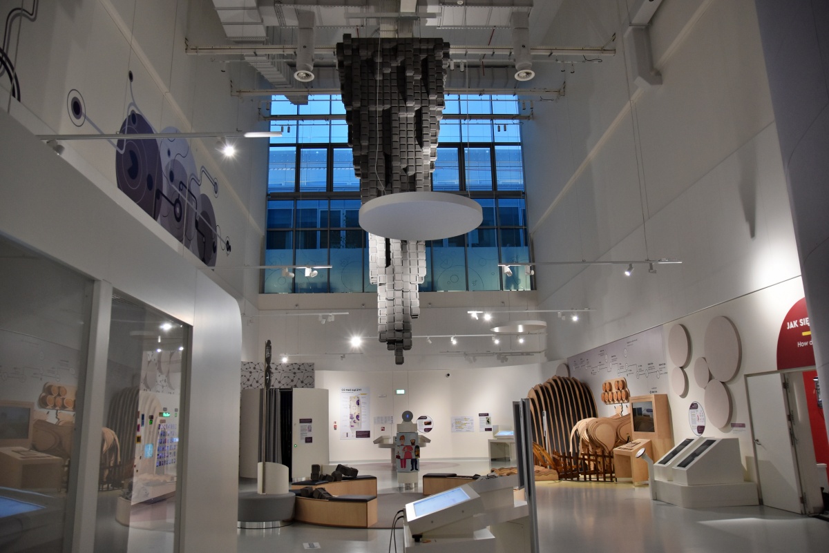Nowoczesne centrum nauki w Krakowie oferujące interaktywną wystawę stałą 'Człowiek i jego marzenia', laboratoria oraz ogród na dachu.