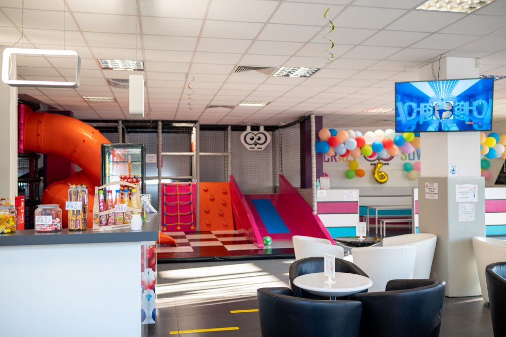 Nowoczesna sala zabaw w krakowskich Czyżynach o powierzchni ponad 300 m2. Oferuje Małpi Gaj, strefę maluszka, zjeżdżalnie tubowe i rolkowe oraz interaktywne gry Knoocker. Idealne miejsce na aktywne popołudnie oraz tematyczne urodziny z profesjonalną opieką animatorów.