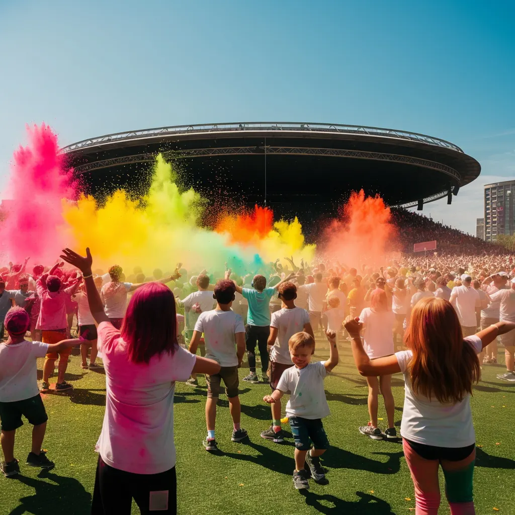 Oficjalny Festiwal Kolorów z proszkami Holi, koncertami i strefą atrakcji. Radość, muzyka i tysiące kolorów na świeżym powietrzu przy TAURON Arenie.